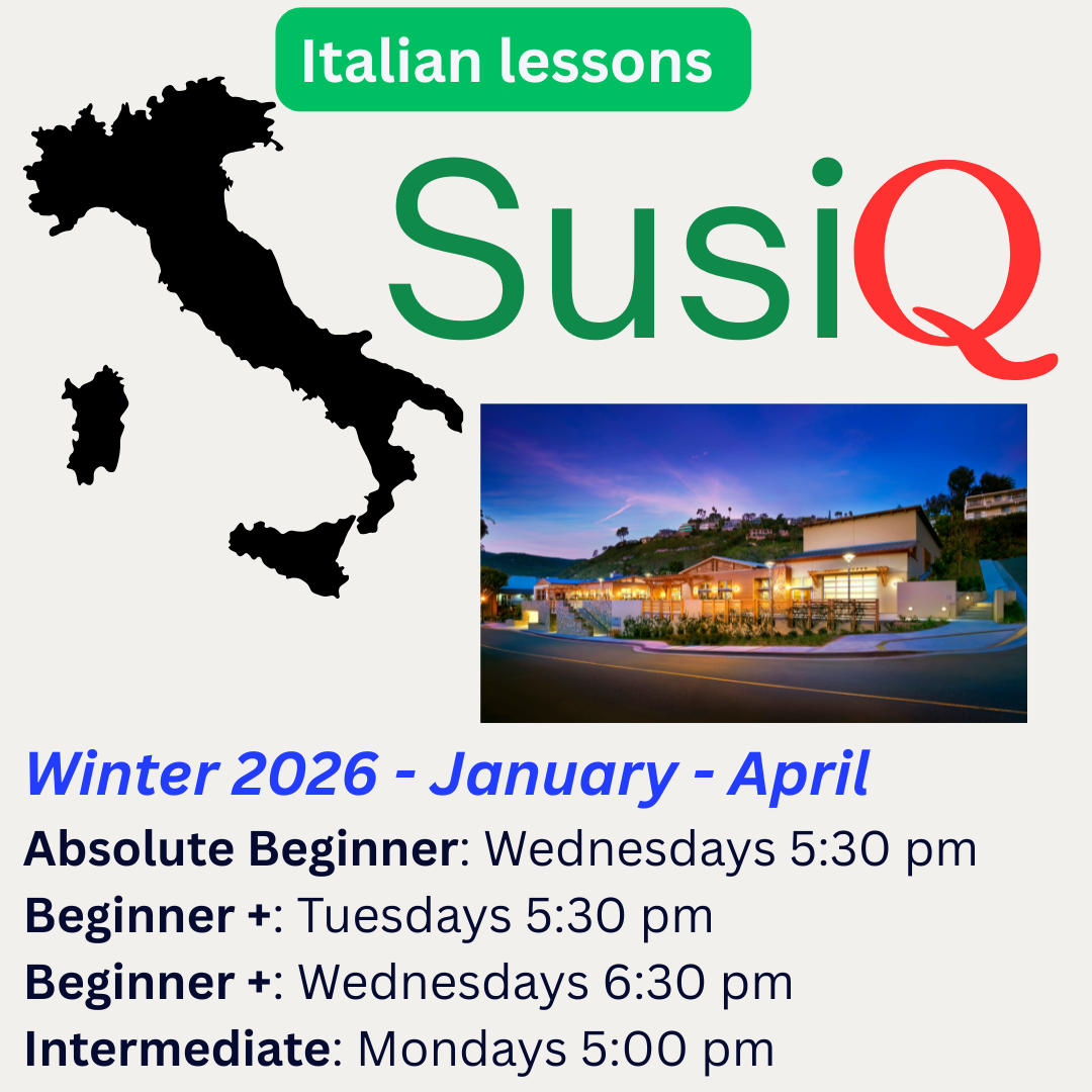 In collaboration with the Recreation Department of Laguna Beach (“The Susi Q”), Ciao Languages is organizing an in-person Italian course. This is an exciting opportunity and we encourage you, if you are interested, to enroll so as to guarantee your seat in the course.